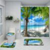 4pcs Door Plants Printed Shower Curtain Set – Waterproof, Non-slip, and Stylish Bathroom Accessories